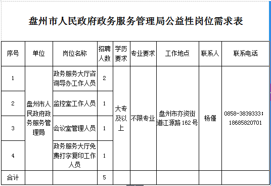 (二)本招聘公告由盤州市人民政府政務服務管理局負責解釋;咨詢電話:0858-3839333;