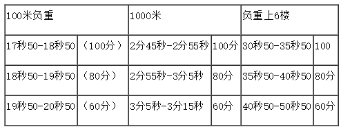 100米負(fù)重、1000米跑、負(fù)重上6樓